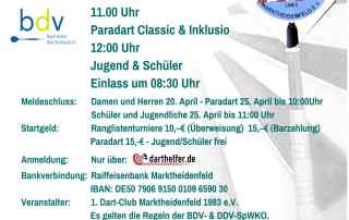5. Ranglistenturnier - 2. Heide-Cup 2023 der Dartschnecken Ebstorf Vergangenes Wochenende fand das 5. DDV Ranglistenturnier in Uelzen statt. Ausrichter waren die Dartschnecken aus Ebstorf bei mehr